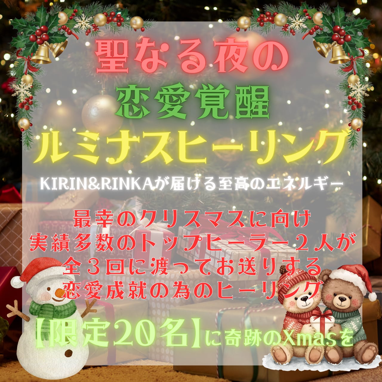 【先着10名様】聖なる夜の恋愛覚醒ルミナスヒーリング開催《KIRIN x Rinka 第1弾》*全3回の最強ヒーリング *オリジナルブレスレット&アロマ付